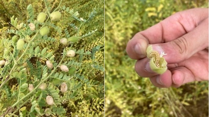 Héliothis fait de gros ravages sur pois chiche : il pénètre dans les grains et les vide de leur contenu